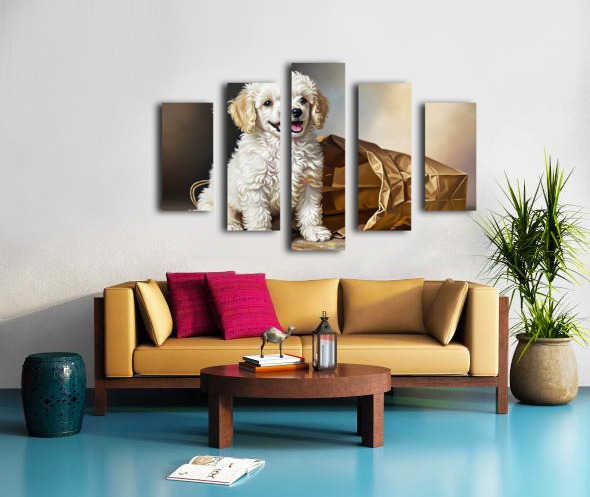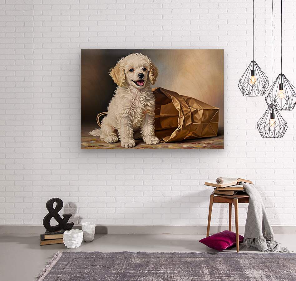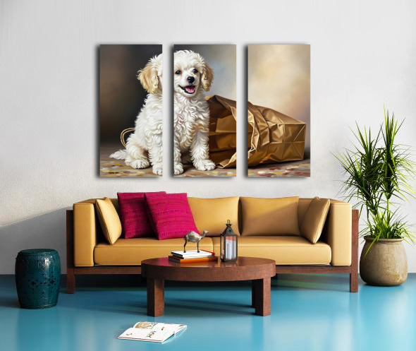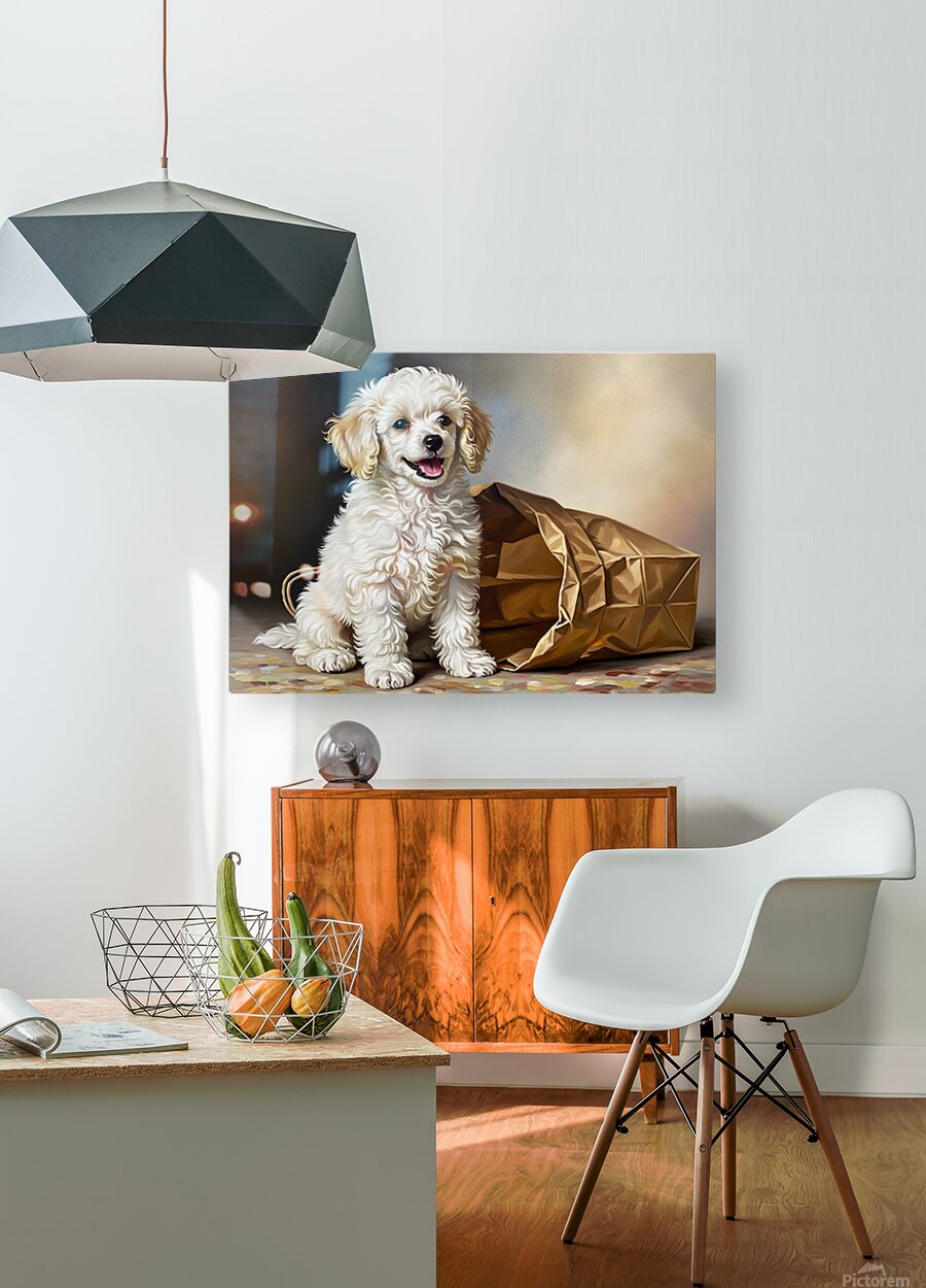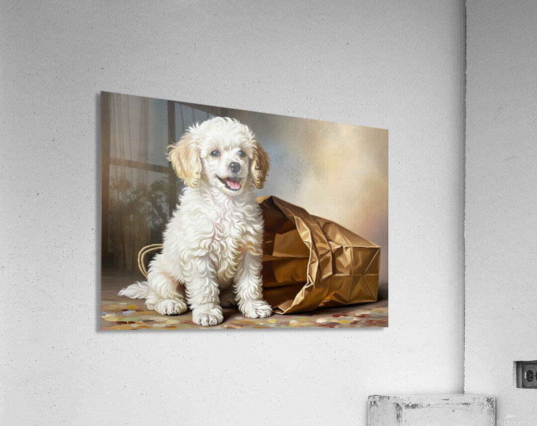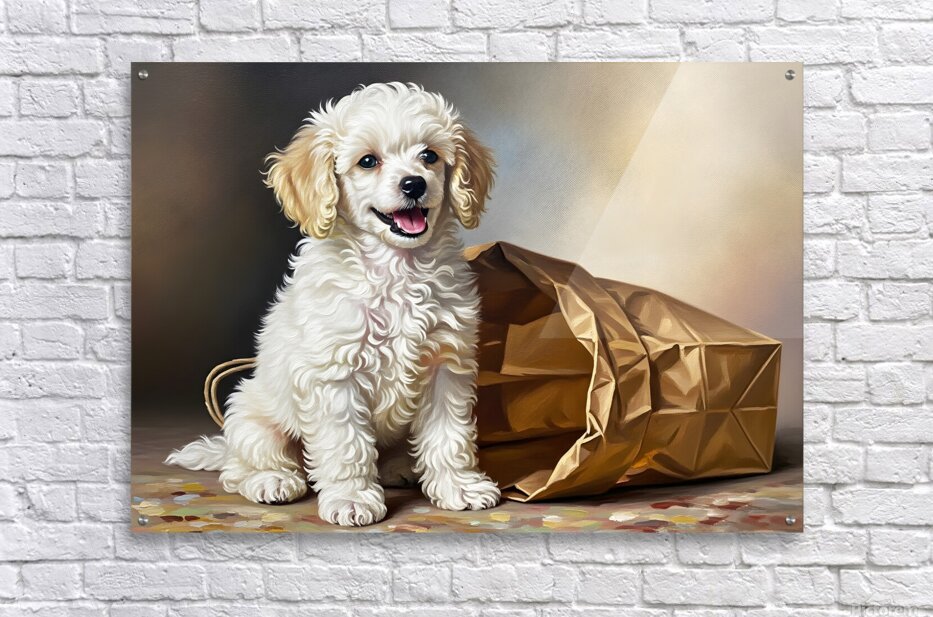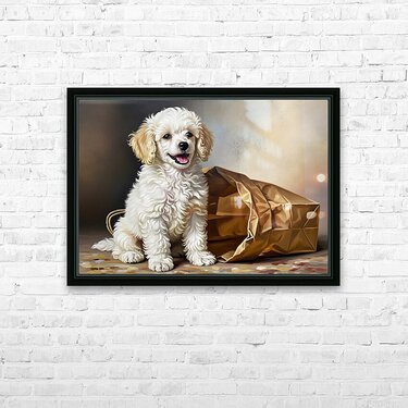 Triumphant Poodle Puppy Completes Paper Bag Adventure Picture Frame Printing