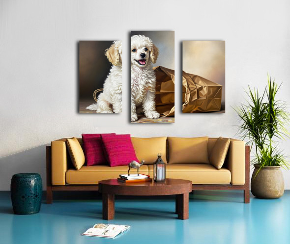 Triumphant Poodle Puppy Completes Paper Bag Adventure Canvas print