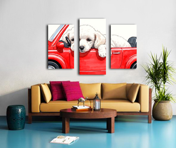 Sleepy Poodle Puppy Rests After Exciting Car Adventure Canvas print