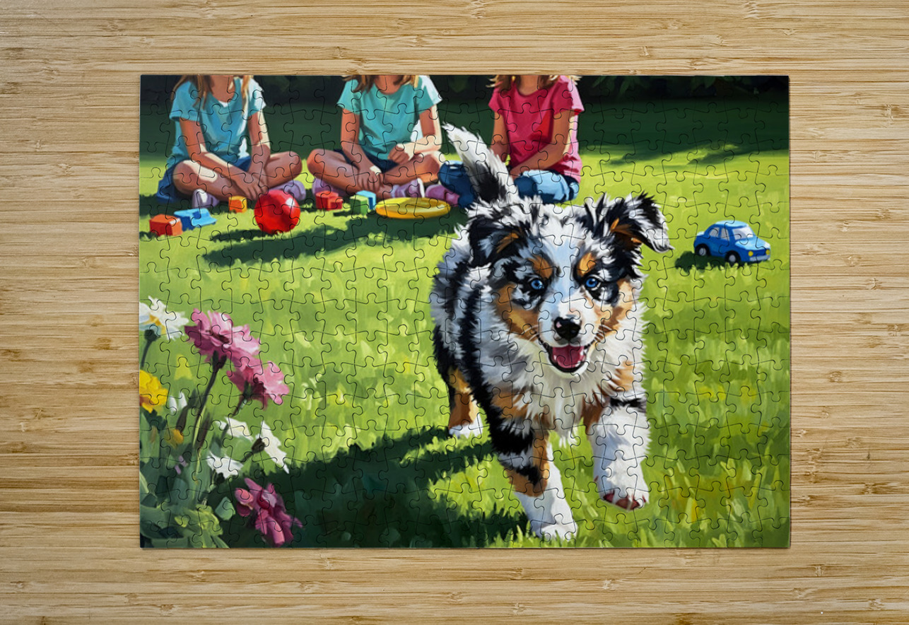 Australian Shepherd Puppy Meets New Friends Puppy Prints Puzzle printing