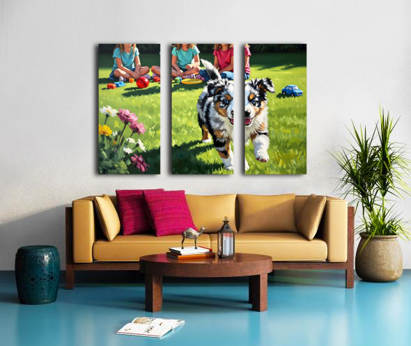 Australian Shepherd Puppy Meets New Friends Canvas print