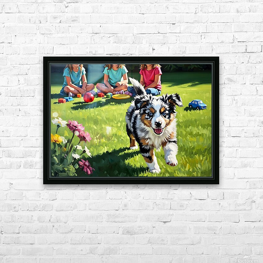 Australian Shepherd Puppy Meets New Friends Frame print