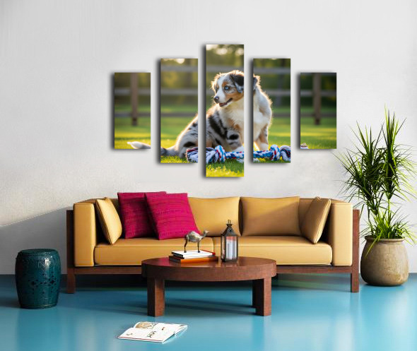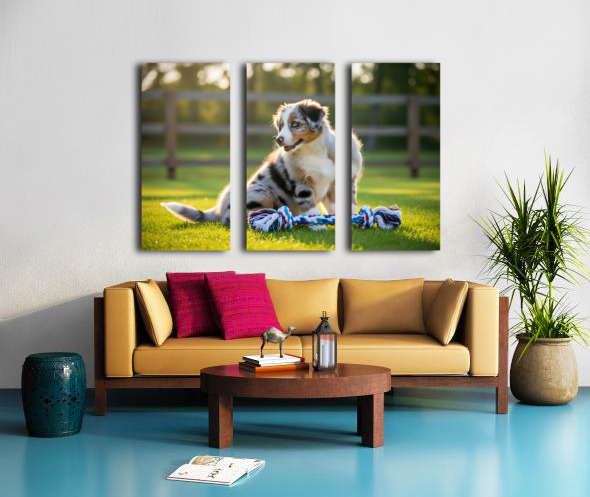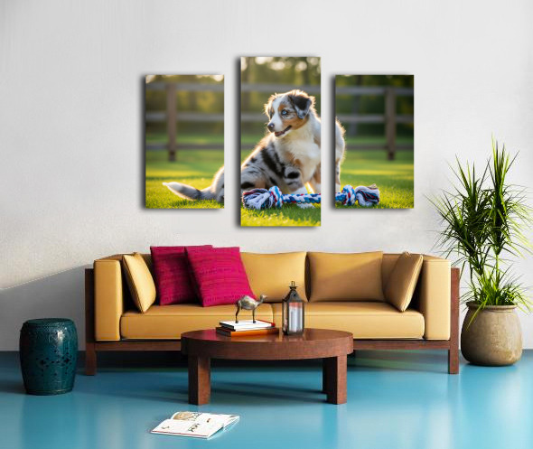 Australian Shepherd Puppy Discovers Big Chew Toy Canvas print