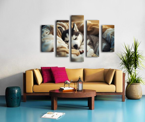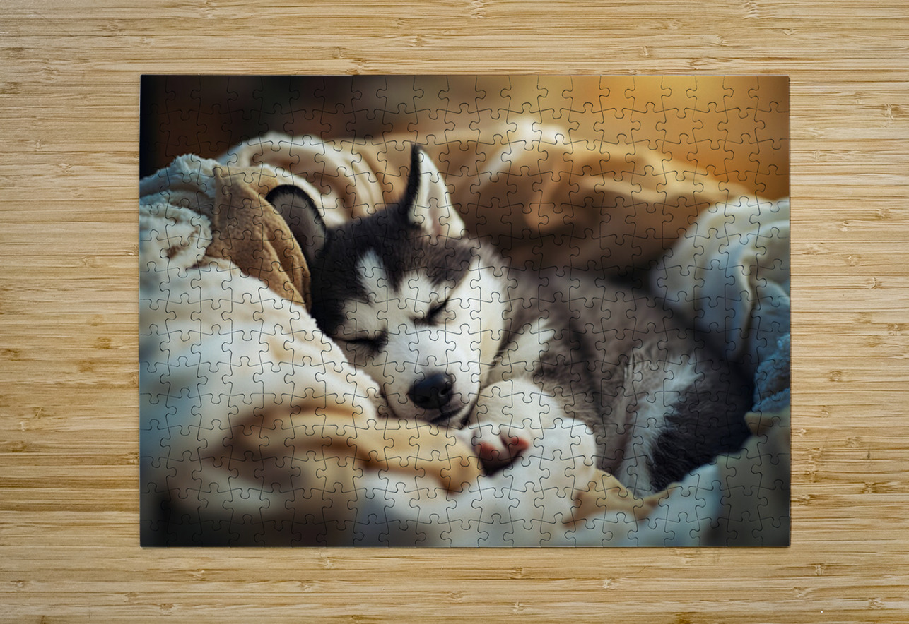Sleepy Husky Puppy Naps In Laundry Nest Puppy Prints Puzzle printing