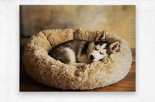 Get this artwork "Sleepy Husky Puppy Napping In Corner Of Giant Bed" in a framed print.