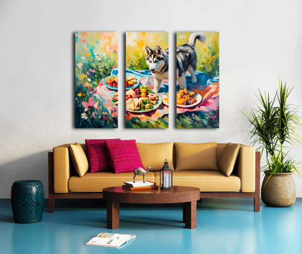Husky Puppy Discovers Picnic Spread Canvas print