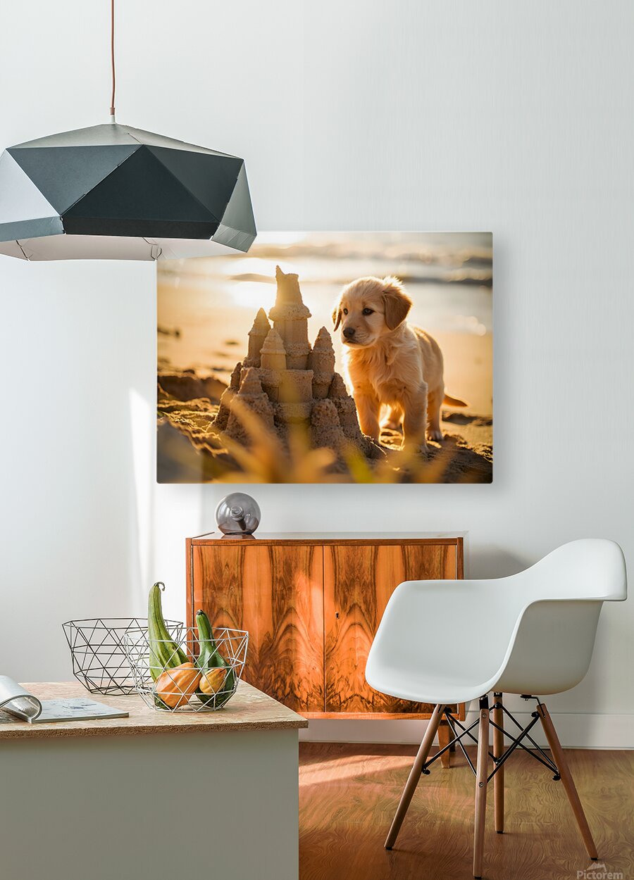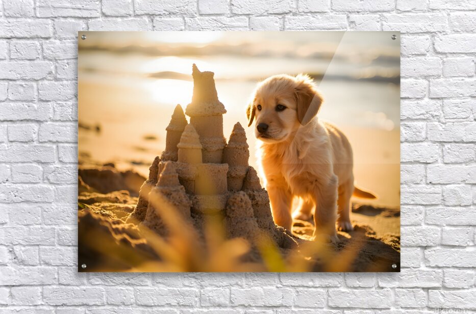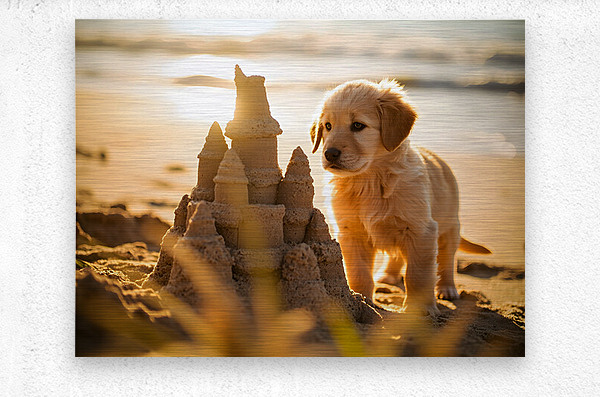 Golden Retriever Puppy Discovers Amazing Sand Castle Picture Frame Printing