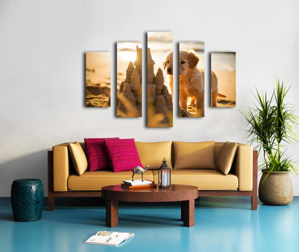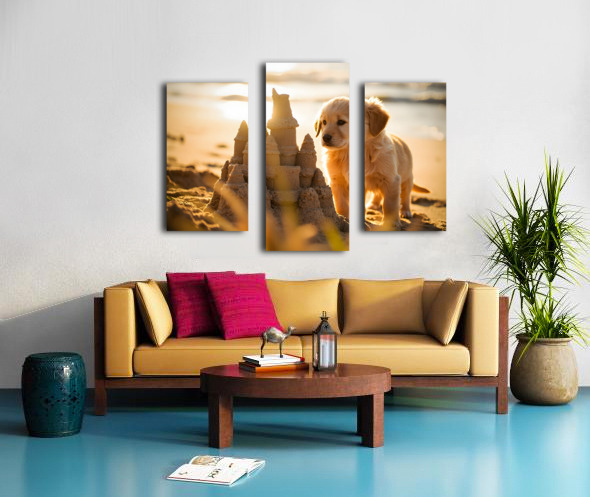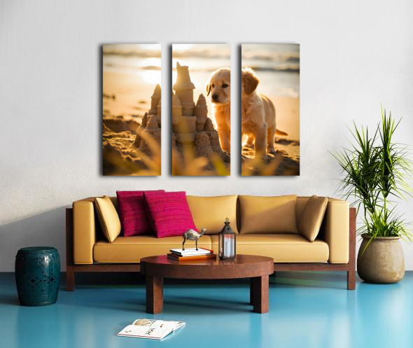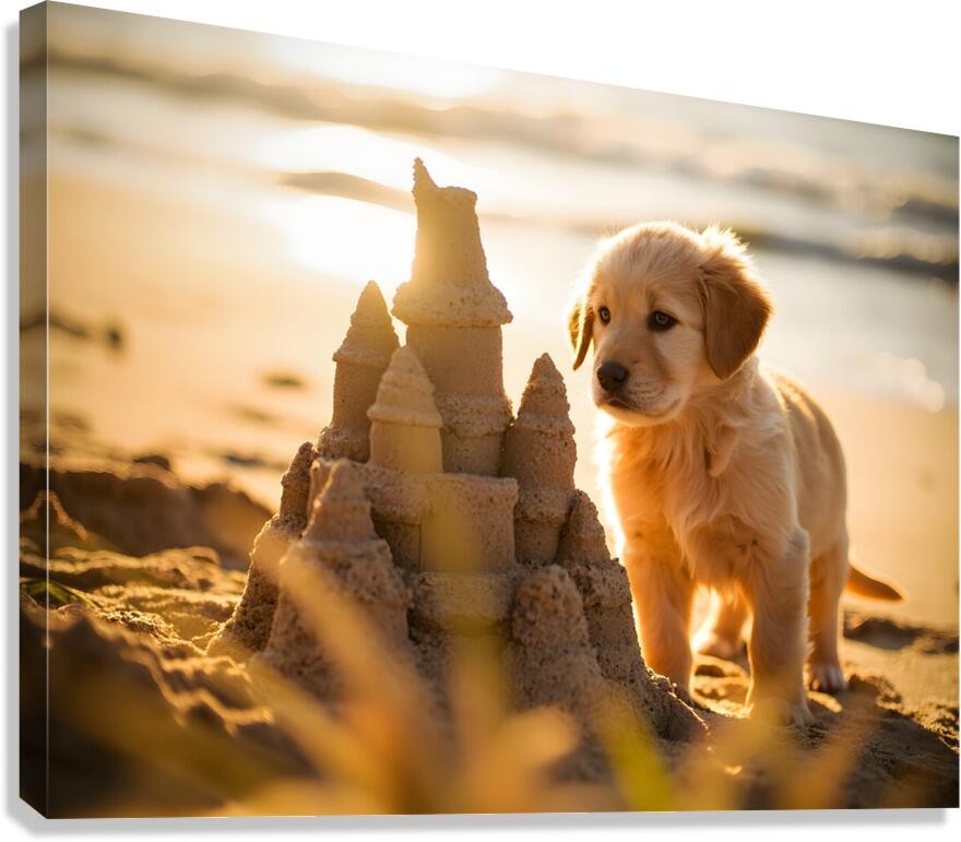 Golden Retriever Puppy Discovers Amazing Sand Castle Canvas print