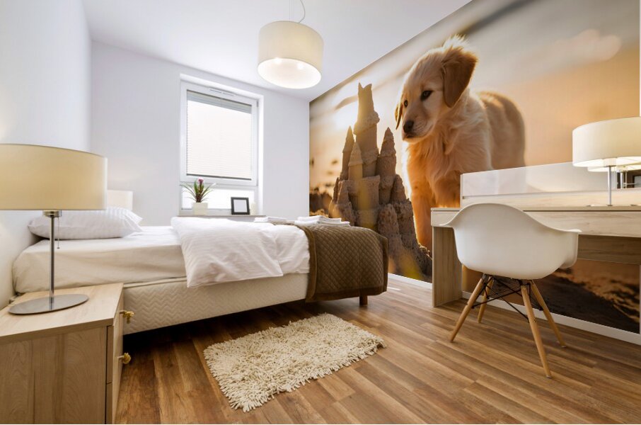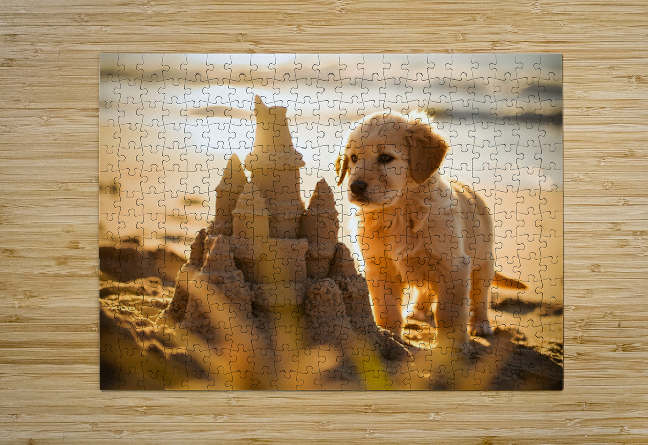 Golden Retriever Puppy Discovers Amazing Sand Castle Puppy Prints Puzzle printing