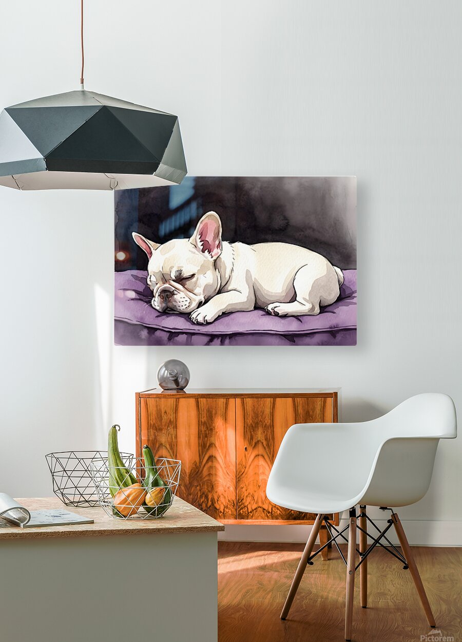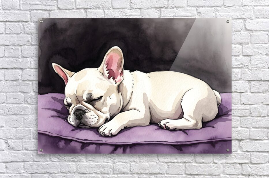 Get this artwork "French Bulldog Puppy Sleeps Peacefully Through Night" in a framed print.