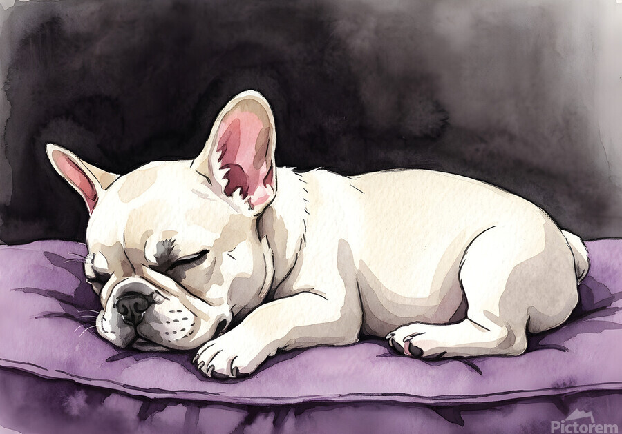 ABOUT THIS ARTWORK: FRENCH BULLDOG PUPPY SLEEPS PEACEFULLY THROUGH NIGHT