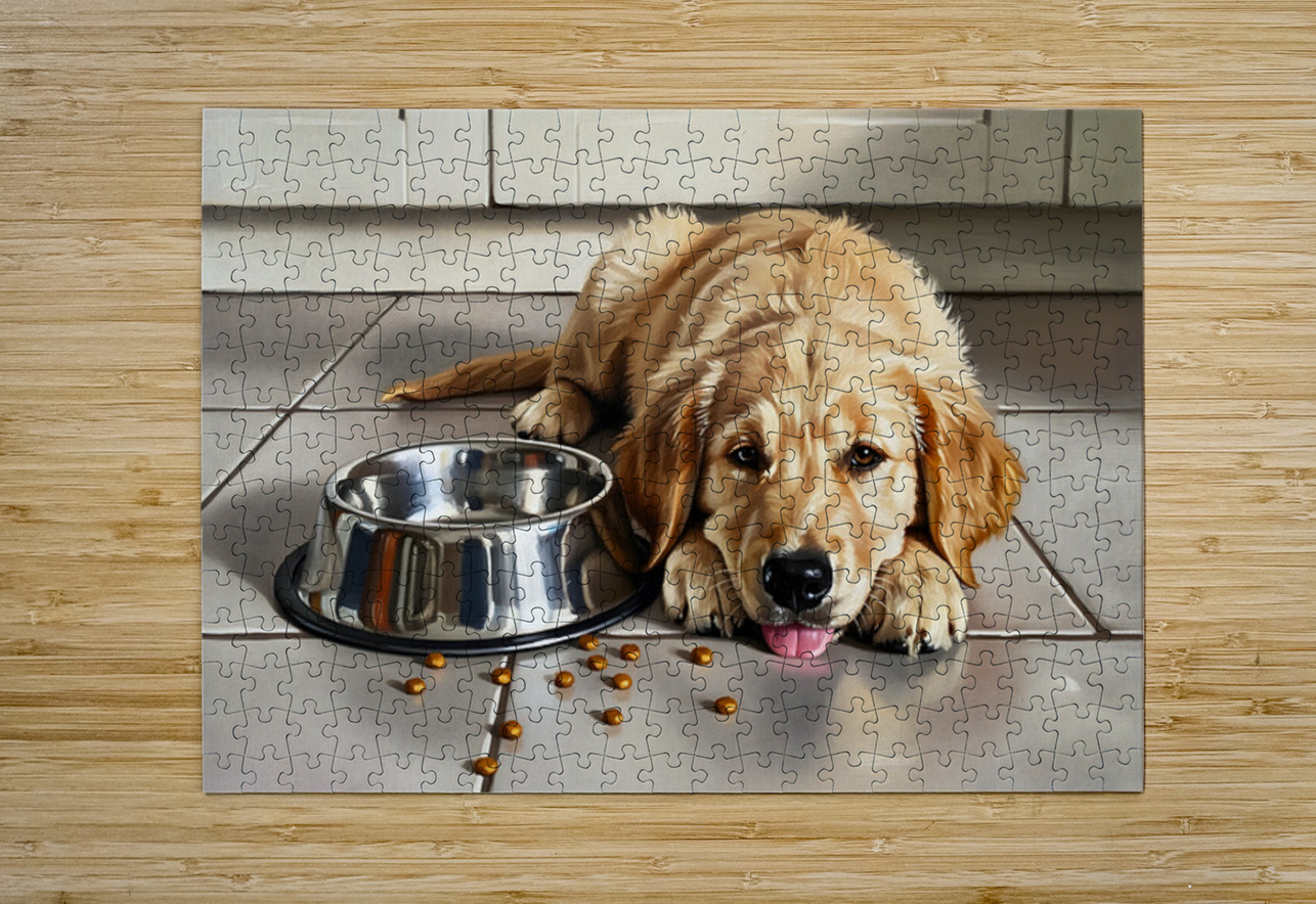 Satisfied Golden Retriever Puppy After Finishing Meal Puppy Prints Puzzle printing