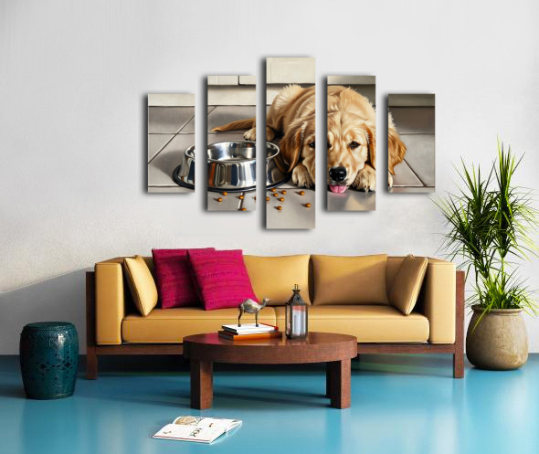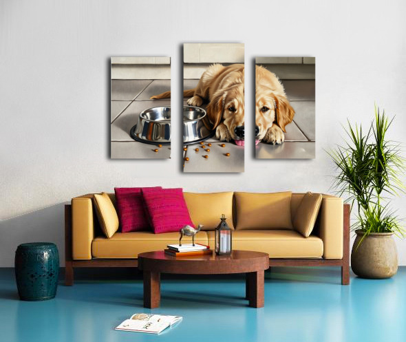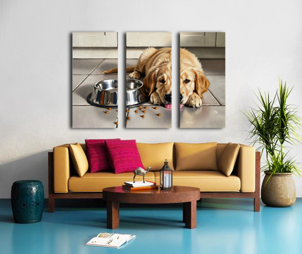 Satisfied Golden Retriever Puppy After Finishing Meal Canvas print