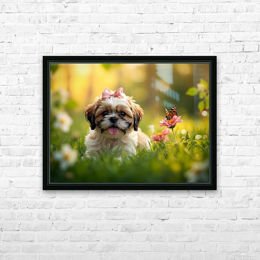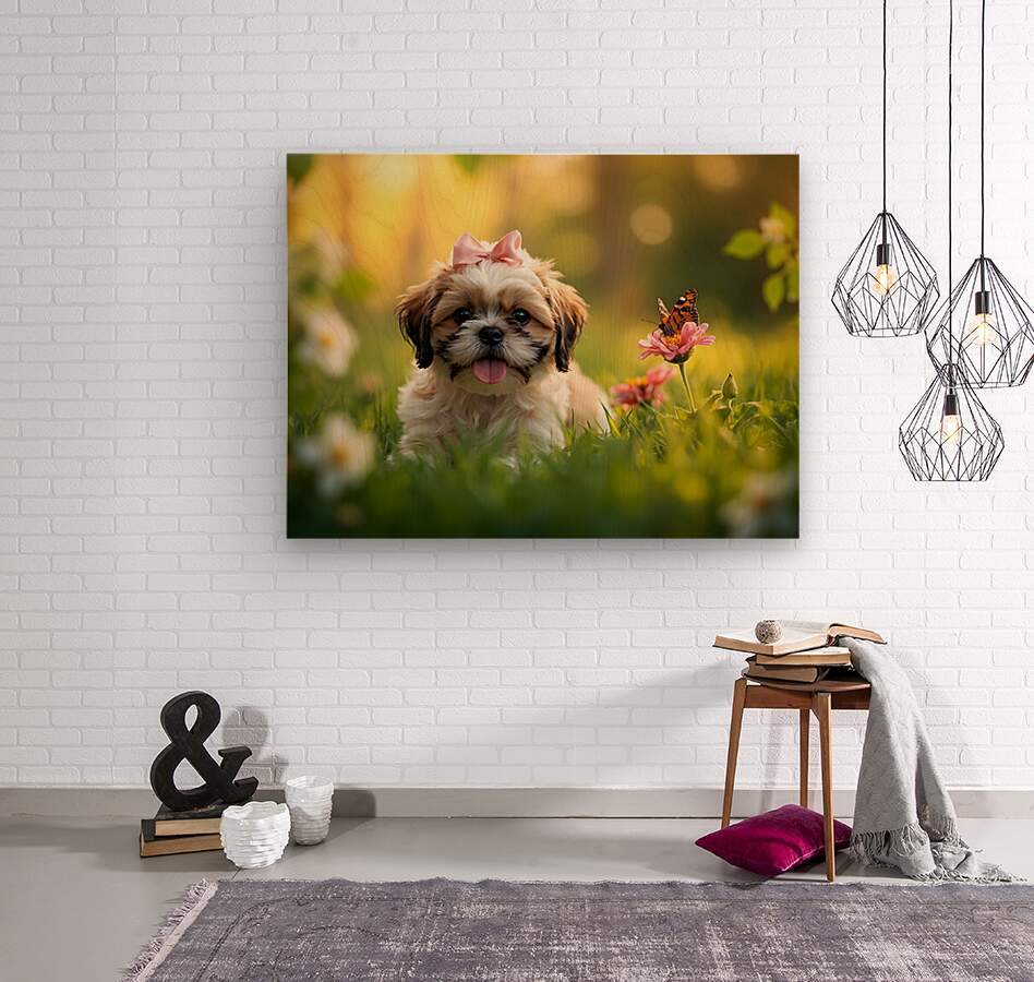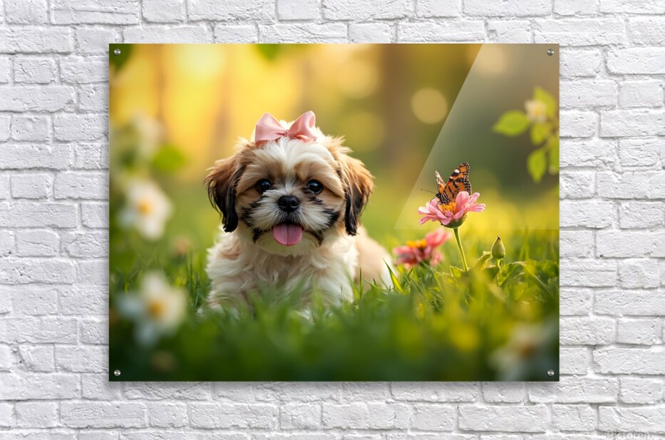 Content Shih Tzu Puppy Watches Butterfly Fly Away Picture Frame Printing