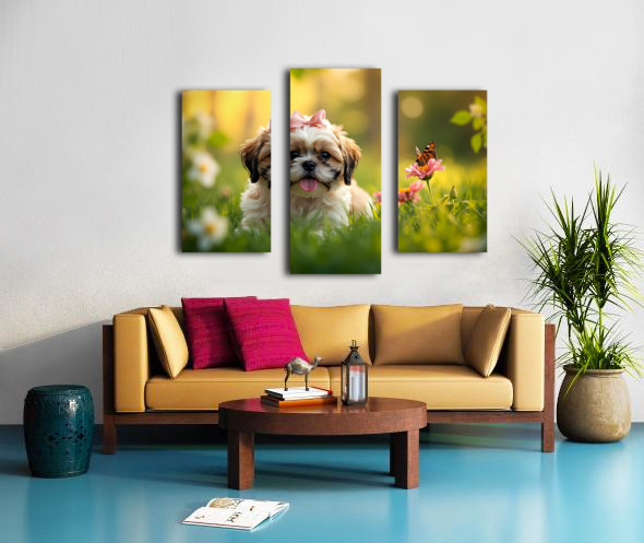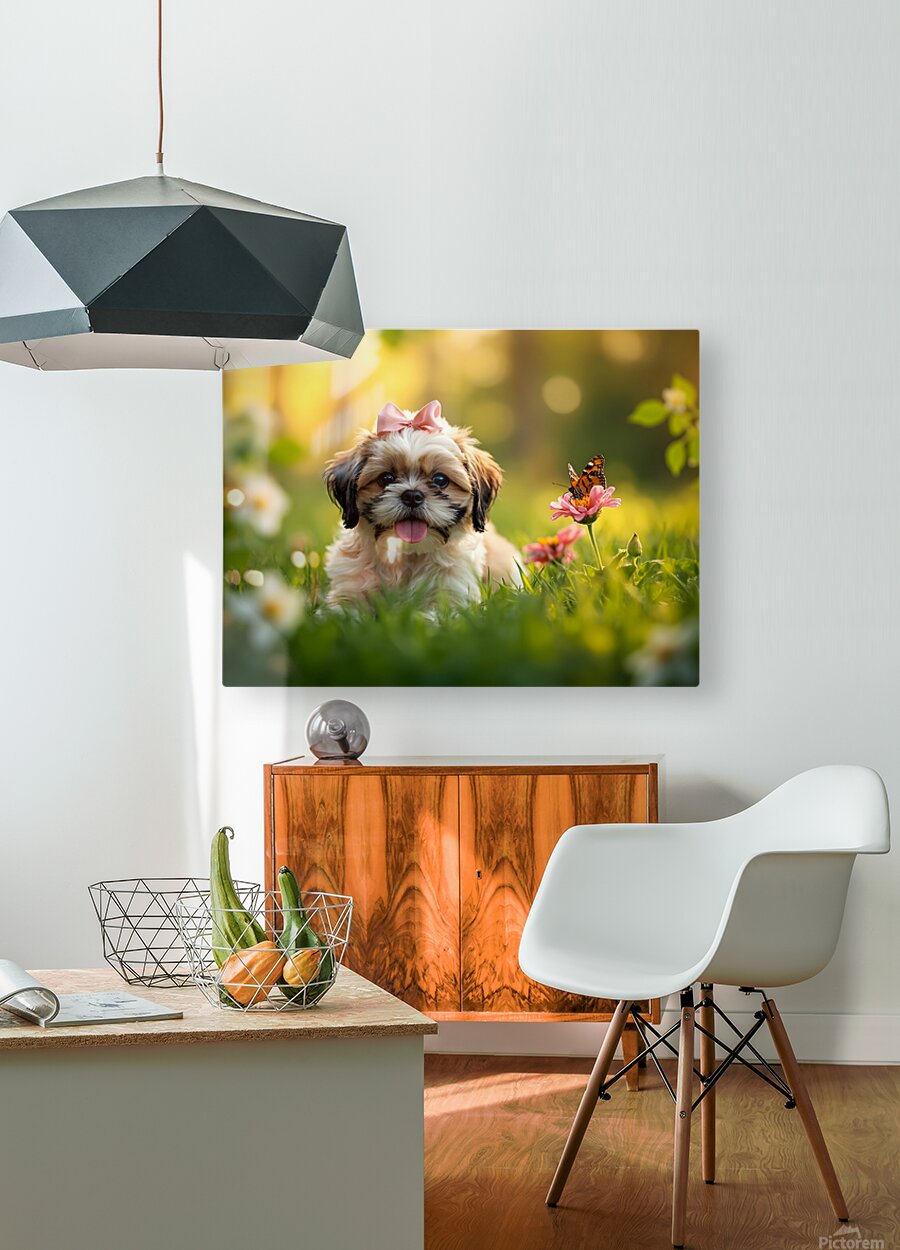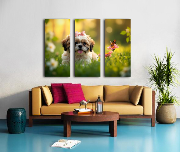 Content Shih Tzu Puppy Watches Butterfly Fly Away Canvas print