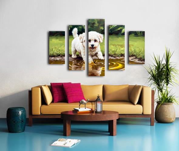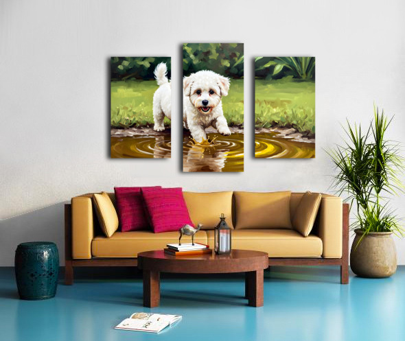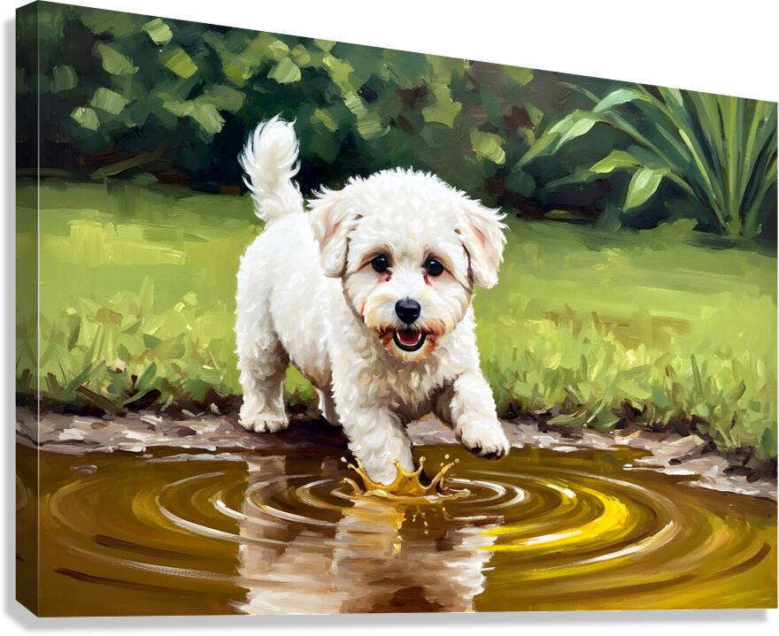 Bichon Frise Puppy Discovers Muddy Puddle Canvas print