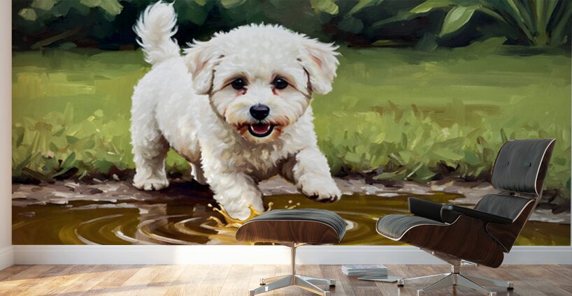 Get this artwork "Bichon Frise Puppy Discovers Muddy Puddle" in a framed print.