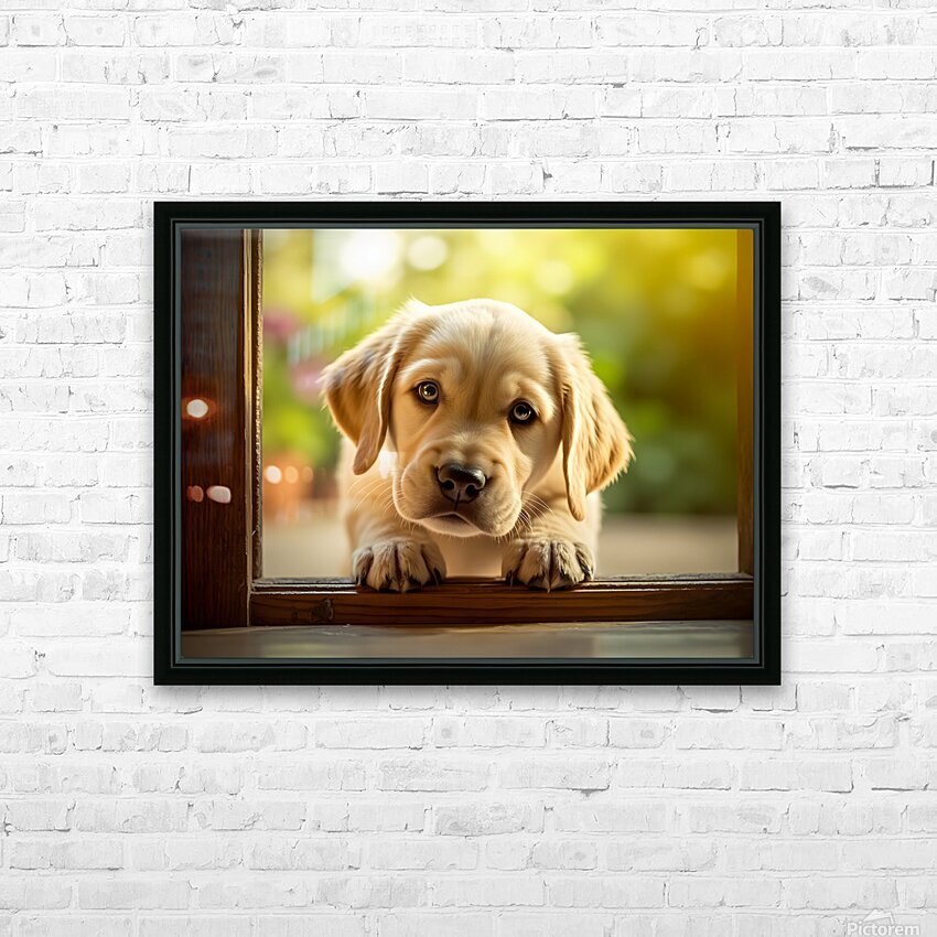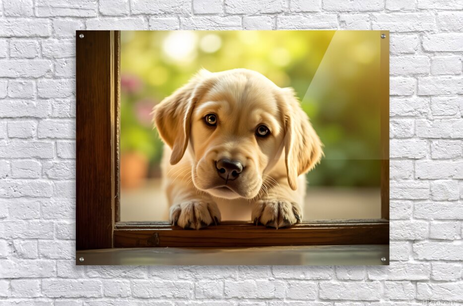 Curious Puppy Discovers Cat Flap Door Picture Frame Printing