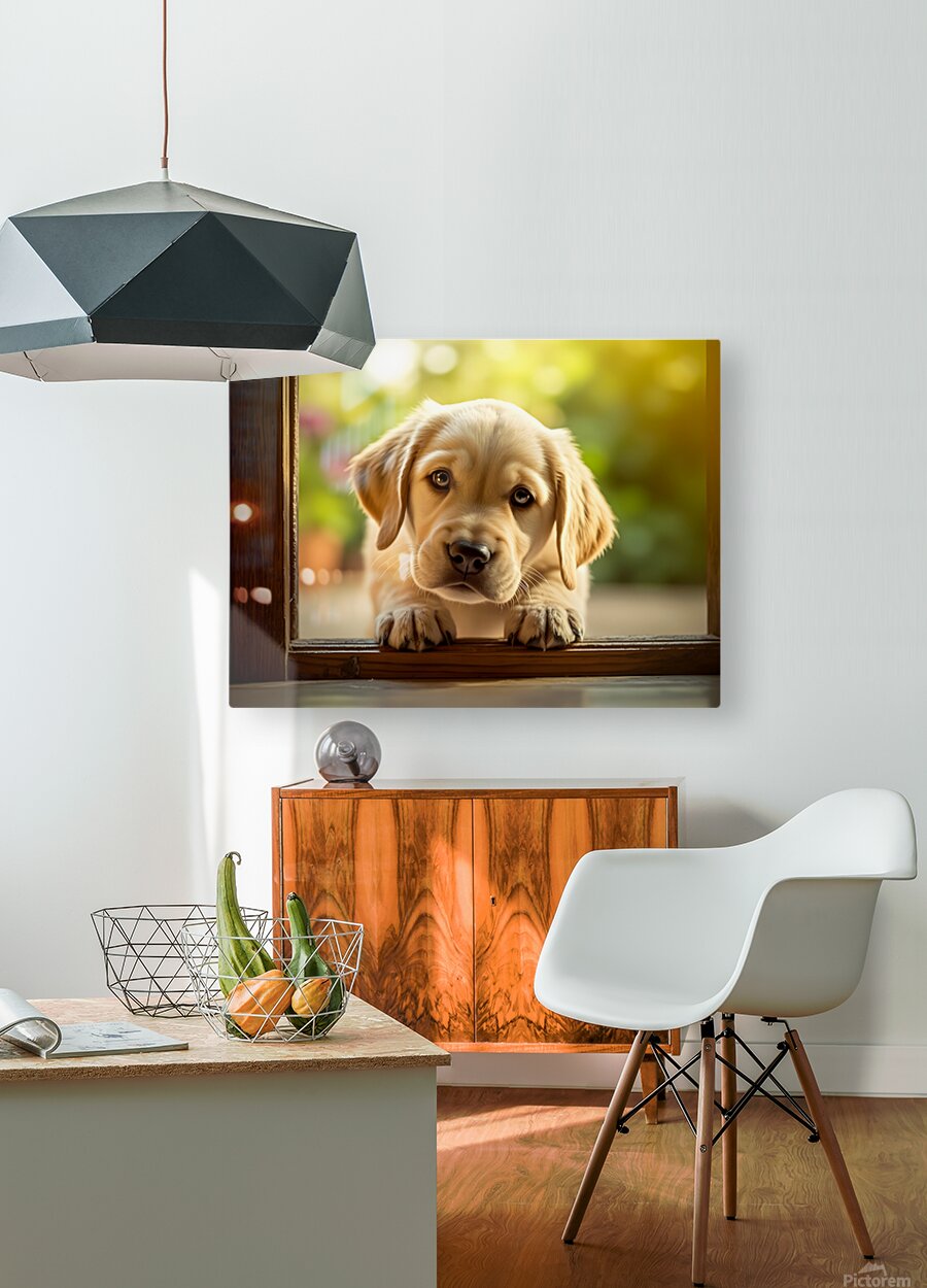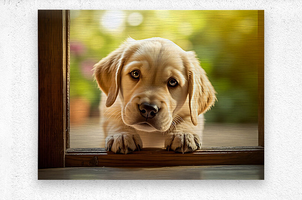 ABOUT THIS ARTWORK: CURIOUS PUPPY DISCOVERS CAT FLAP DOOR