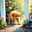A golden Labrador Retriever puppy joyfully emerges from behind a red brick wall corner showing its full adorable face with tongue slightly out and an excited happy expression Digital Artwork.