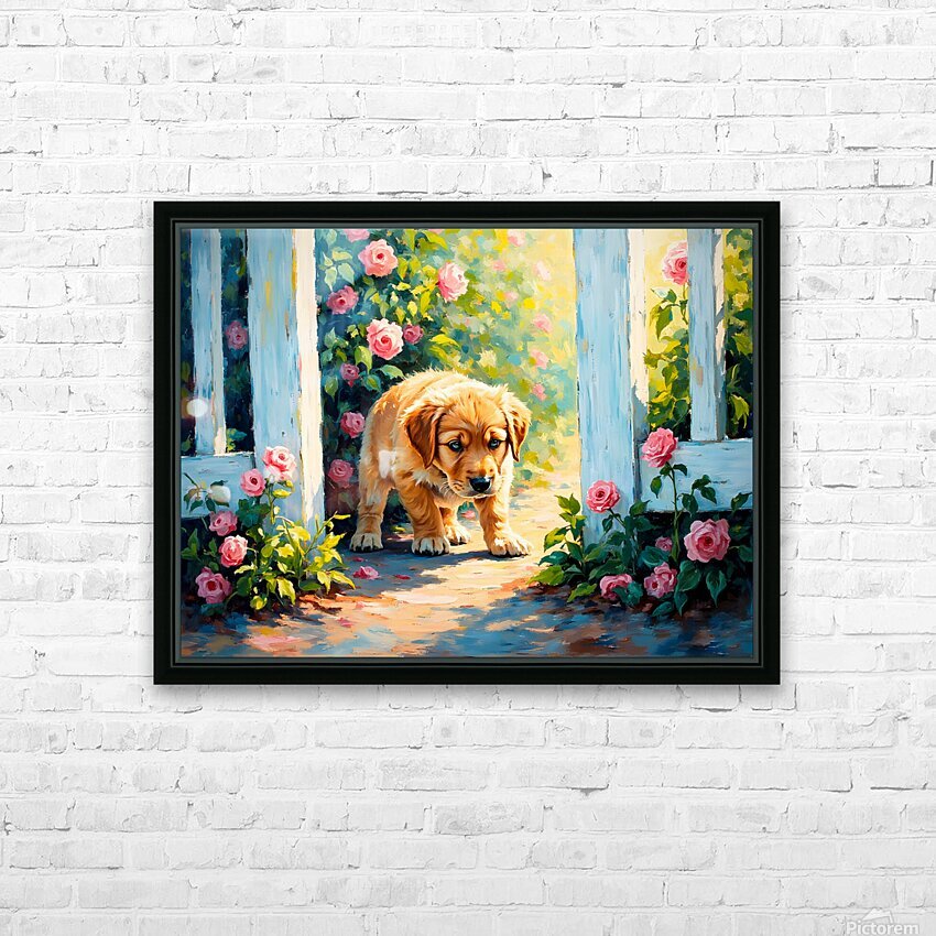 Get this artwork "Happy Labrador Retriever Puppy Emerging From Behind Brick Wall" in a framed print.