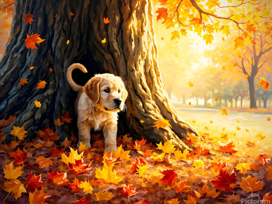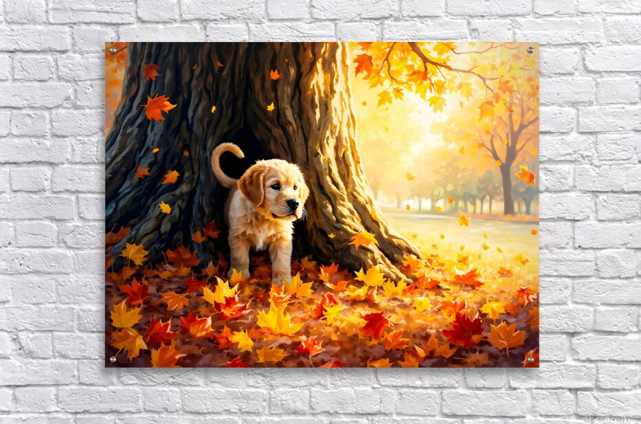 Get this artwork "Curious Labrador Puppy Peeking Around Garden Corner" in a framed print.