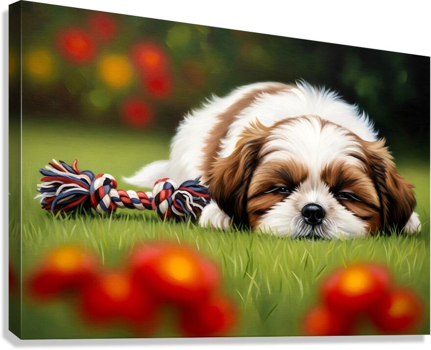 Shih Tzu Puppy Sound Asleep After Playtime Canvas print