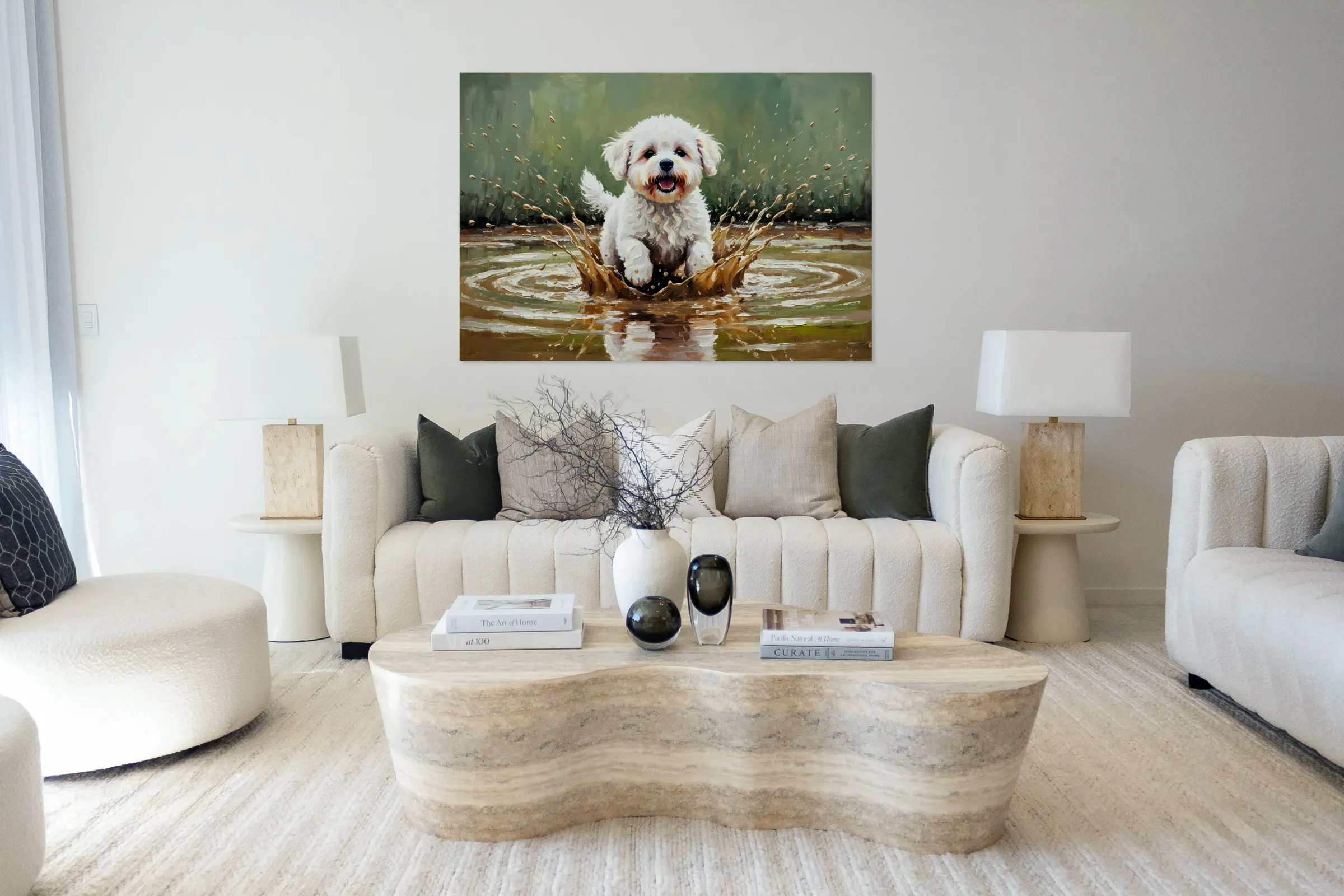 Muddy Bichon Frise Puppy After Puddle Adventure Canvas print