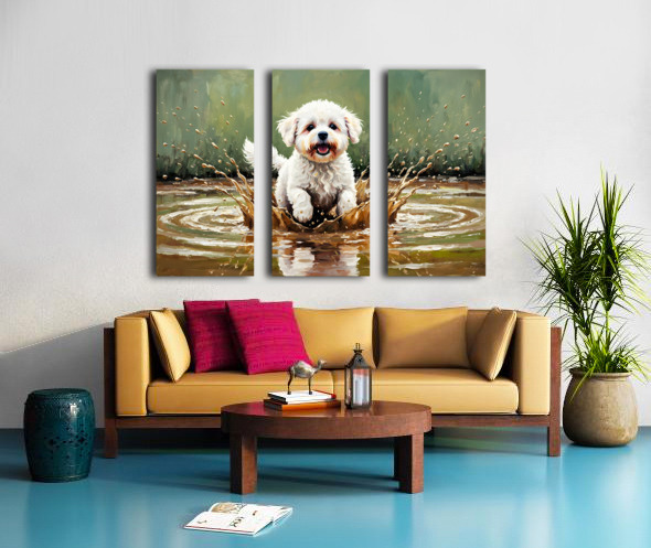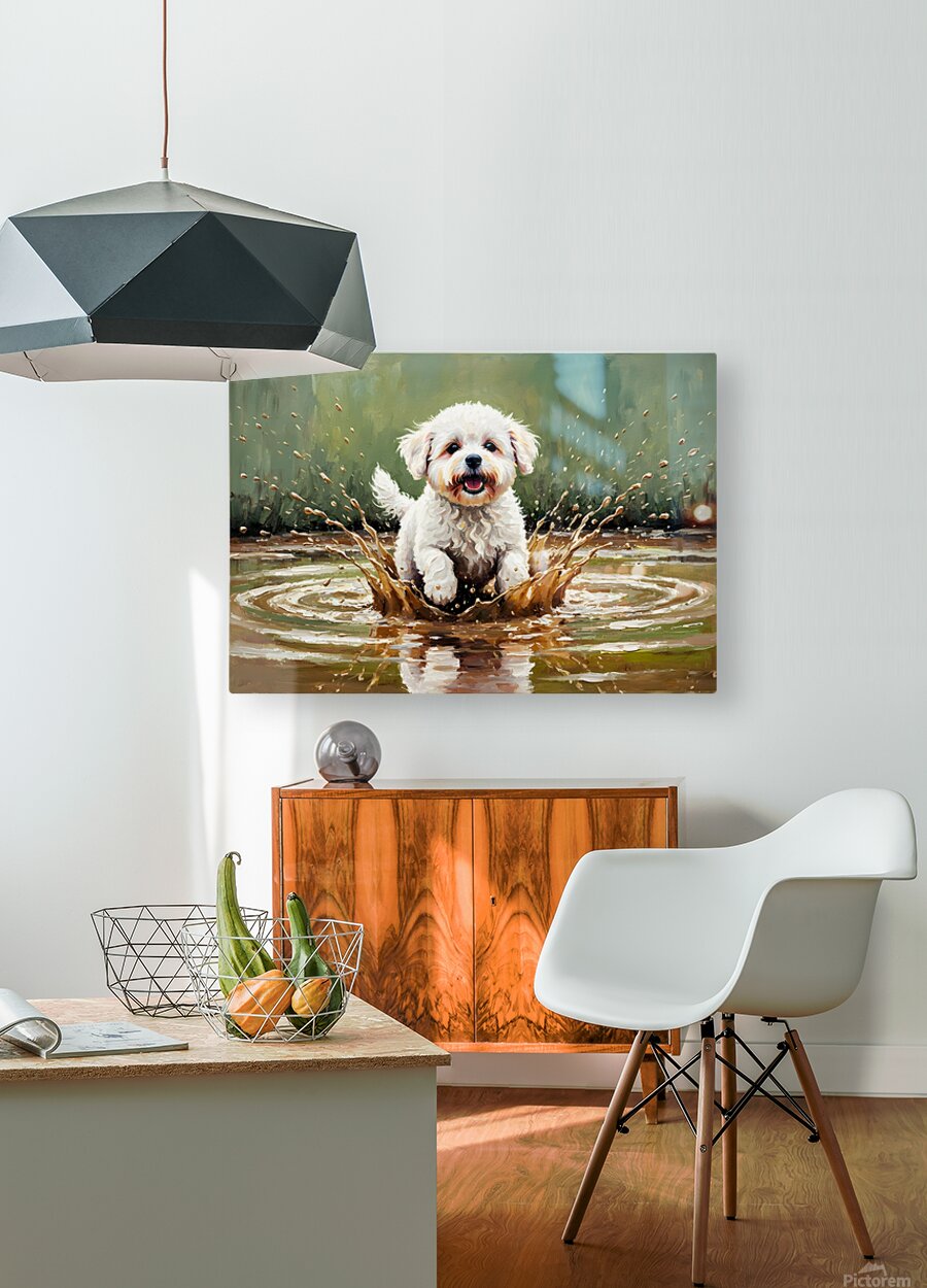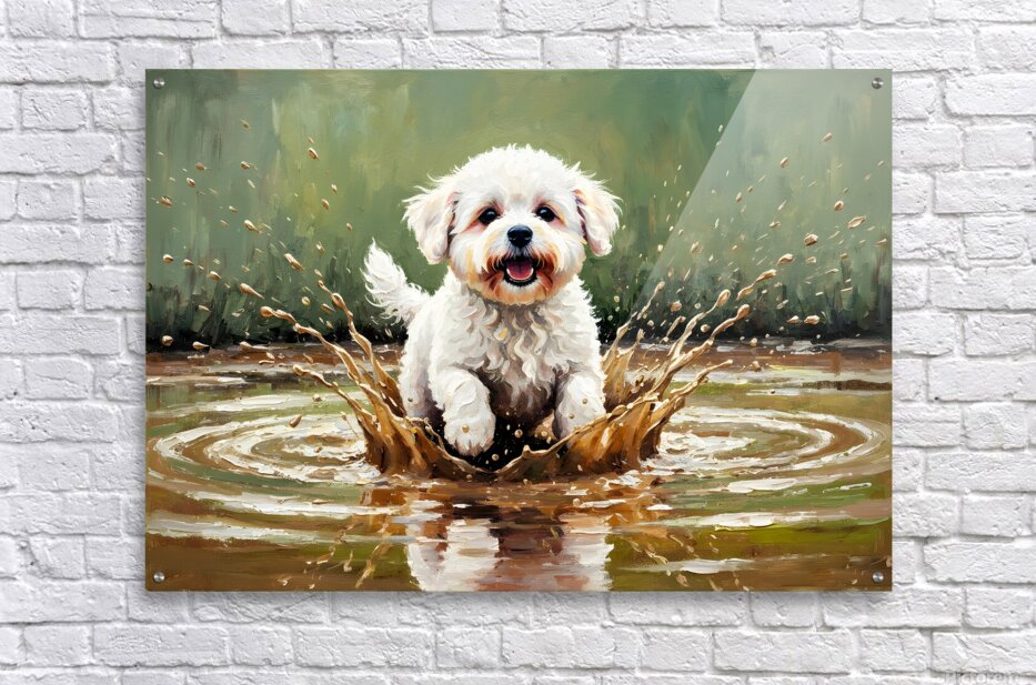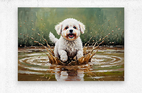 ABOUT THIS ARTWORK: MUDDY BICHON FRISE PUPPY AFTER PUDDLE ADVENTURE