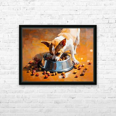 Get this artwork "Chihuahua Puppy Discovers Food Bowl" in a framed print.