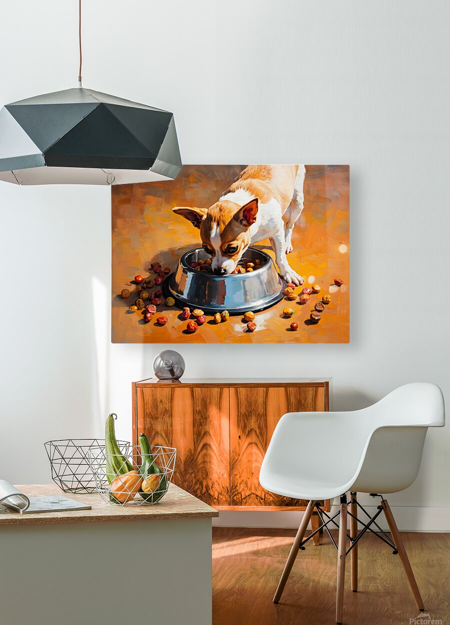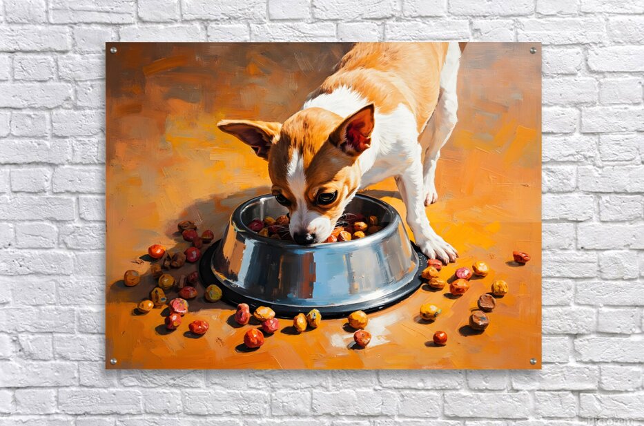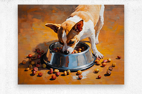 Get this artwork "Chihuahua Puppy Discovers Food Bowl" in a framed print.