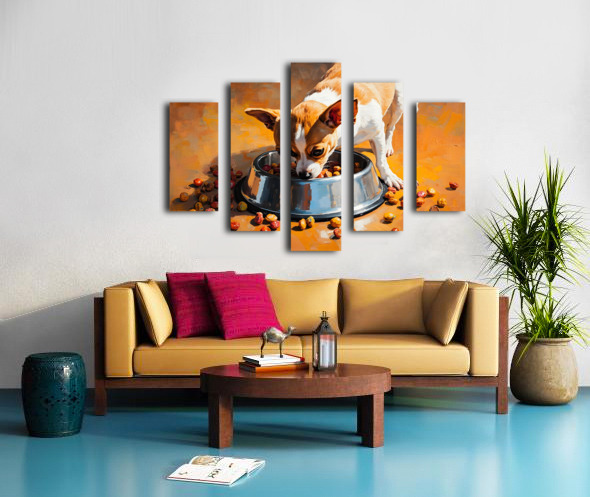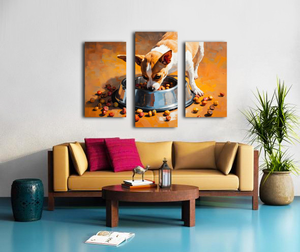 Chihuahua Puppy Discovers Food Bowl Canvas print