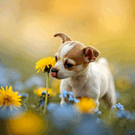 HAPPY CHIHUAHUA PUPPY AFTER SNIFFING DANDELION