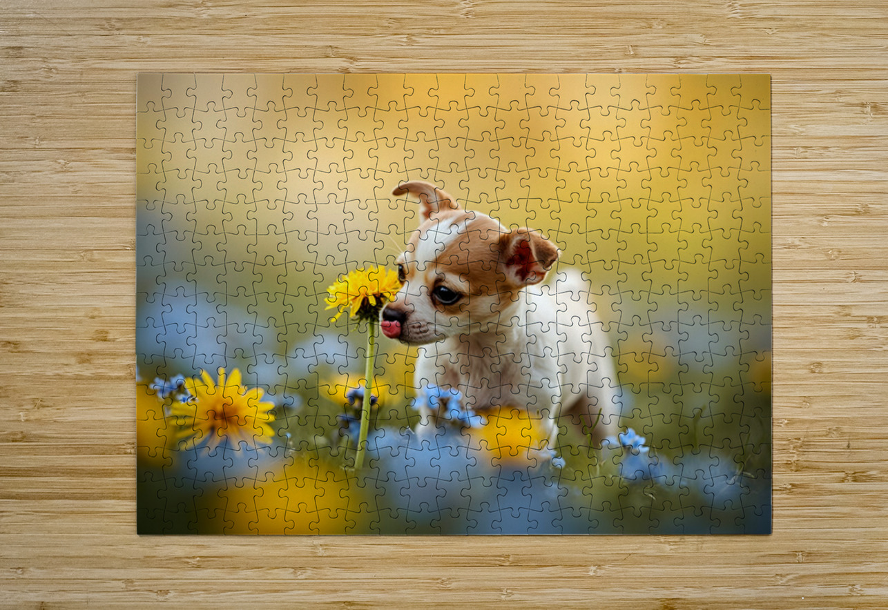Happy Chihuahua Puppy After Sniffing Dandelion Puppy Prints Puzzle printing