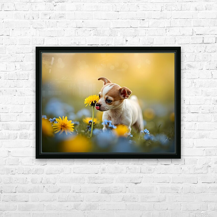 Happy Chihuahua Puppy After Sniffing Dandelion Picture Frame Printing