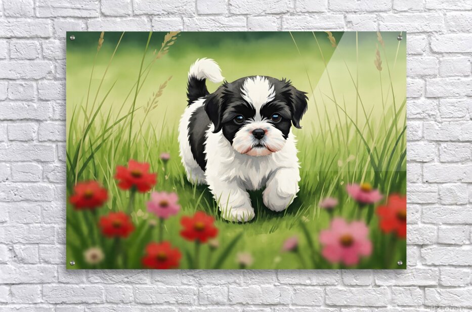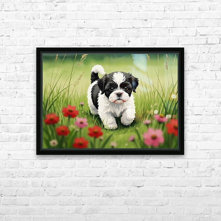 Shih Tzu Puppy Happy In Grass Picture Frame Printing