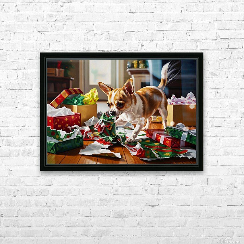 Chihuahua Puppy Discovers Christmas Morning Surprises Picture Frame Printing