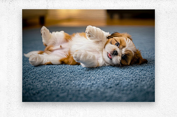 Get this artwork "Shih Tzu Puppy Hopes For Belly Rub Time" in a framed print.