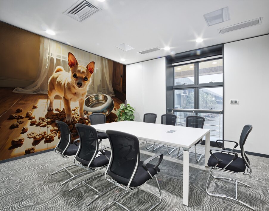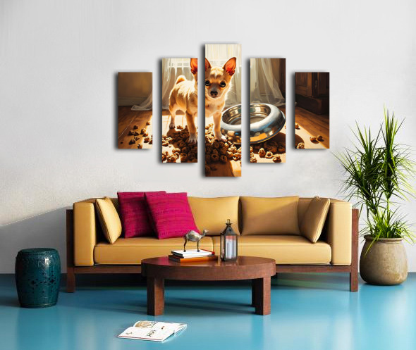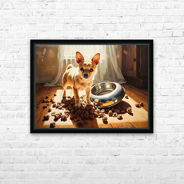 ABOUT THIS ARTWORK: GUILTY CHIHUAHUA PUPPY AFTER FOOD MESS