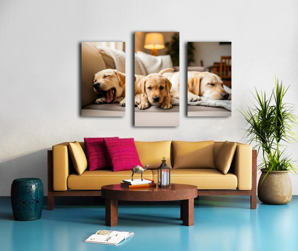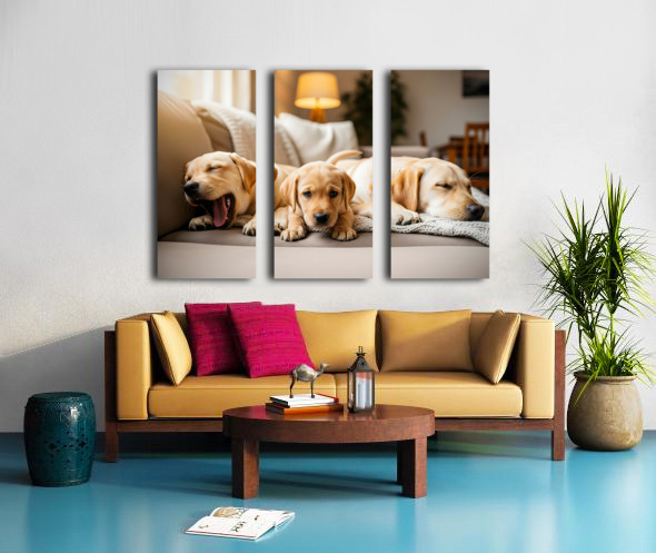 Golden Puppy Finds Spot On Crowded Couch Canvas print