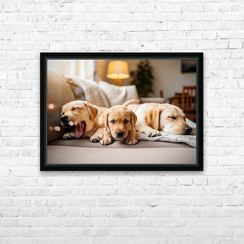 Golden Puppy Finds Spot On Crowded Couch Picture Frame Printing
