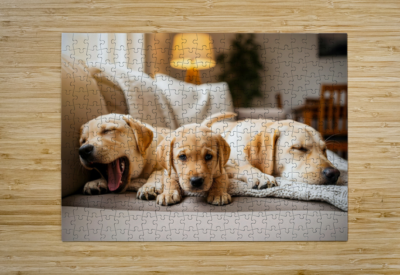 Golden Puppy Finds Spot On Crowded Couch Puppy Prints Puzzle printing