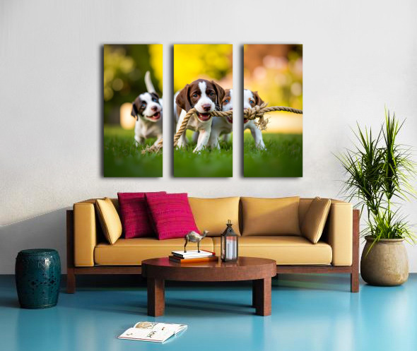 German Shorthaired Pointer Puppy Discovers Big Chew Toy Canvas print