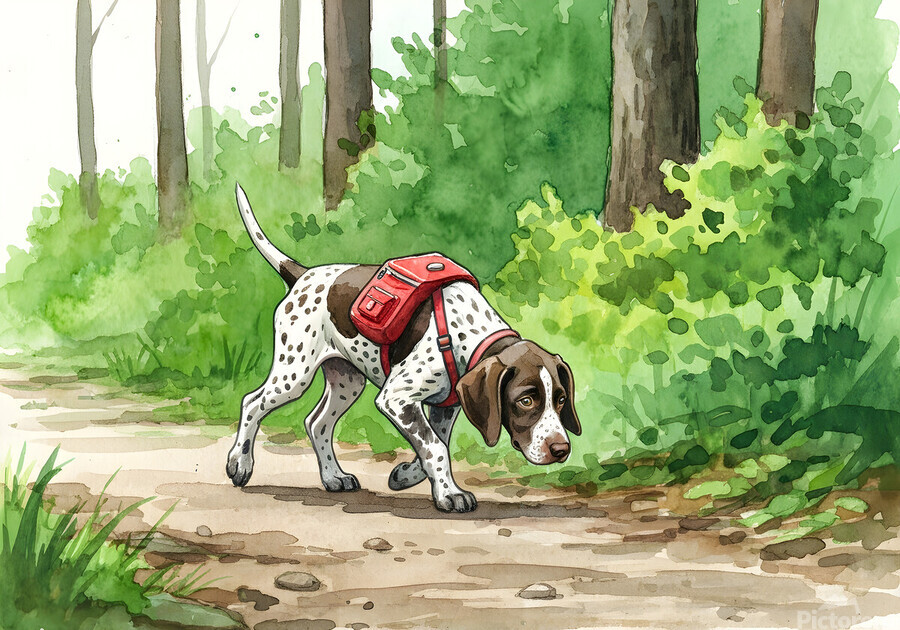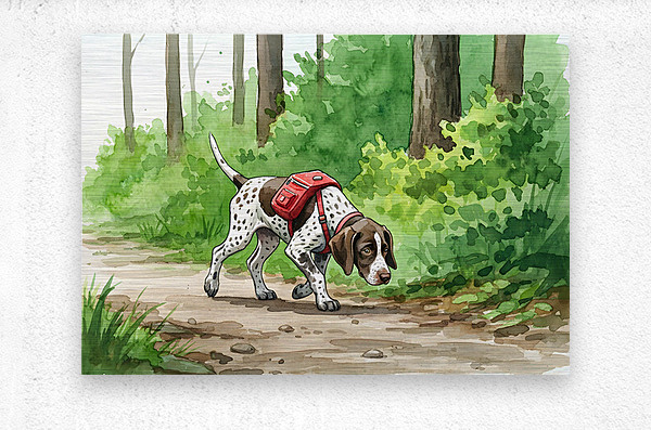 ABOUT THIS ARTWORK: GERMAN SHORTHAIRED POINTER PUPPY GETS READY FOR ADVENTURE