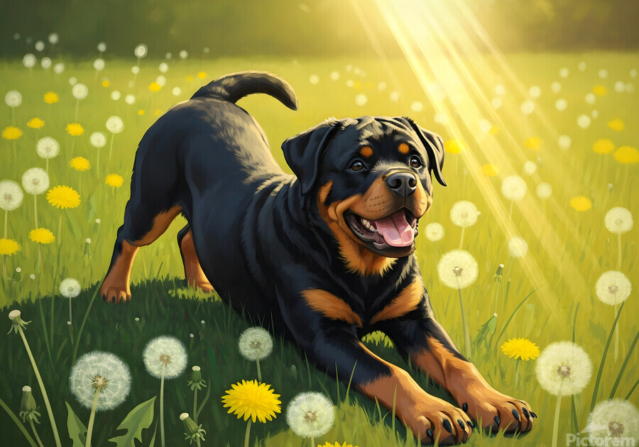 ABOUT THIS ARTWORK: ROTTWEILER PUPPY FINDS PERFECT SUNNY SPOT