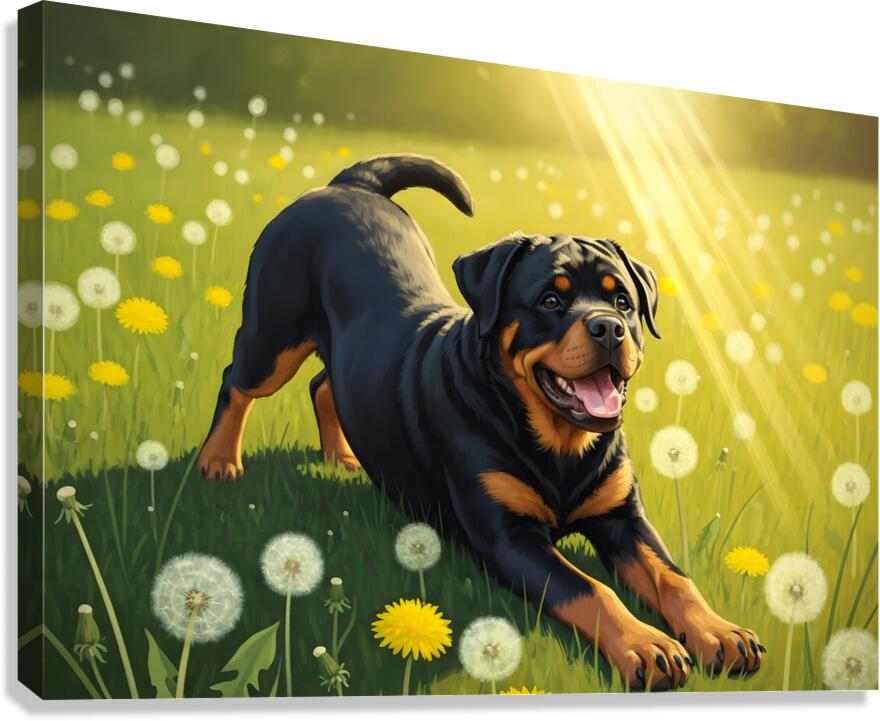 Rottweiler Puppy Finds Perfect Sunny Spot Canvas print