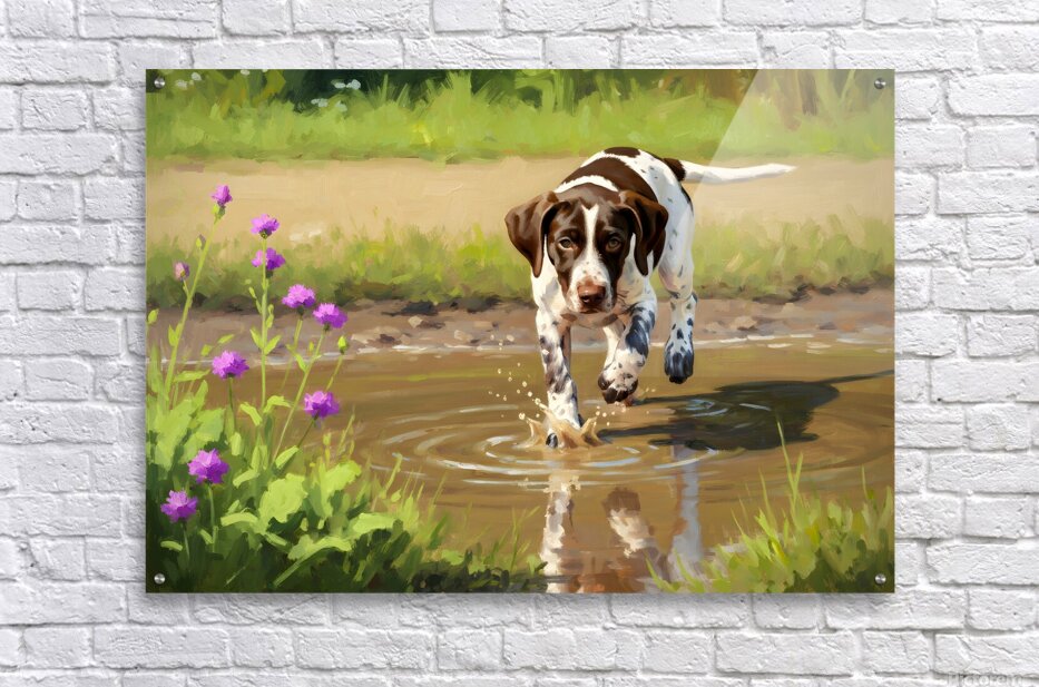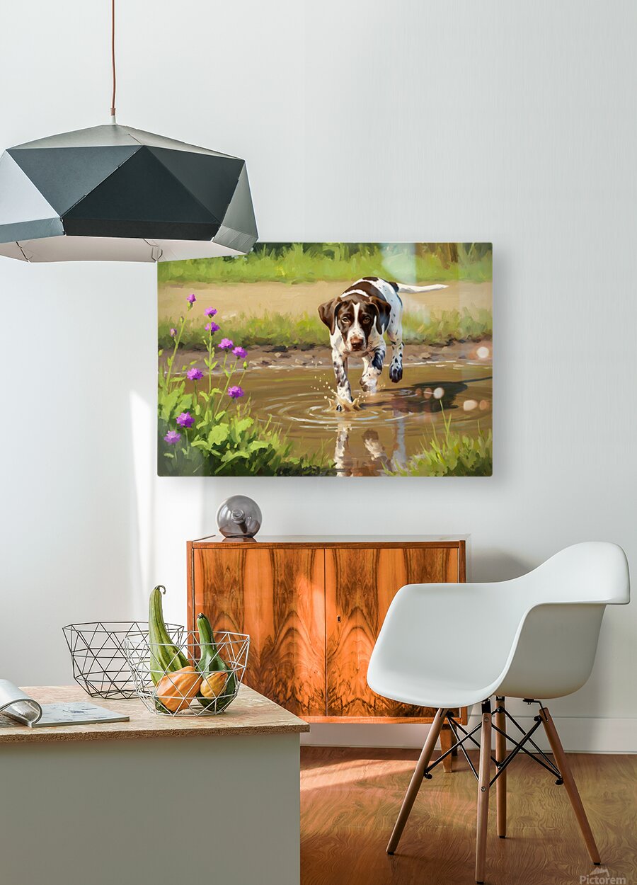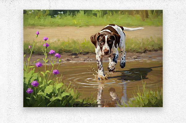 ABOUT THIS ARTWORK: GERMAN SHORTHAIRED POINTER PUPPY DISCOVERS MUDDY PUDDLE