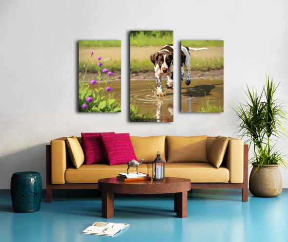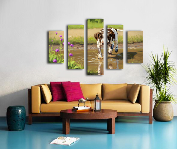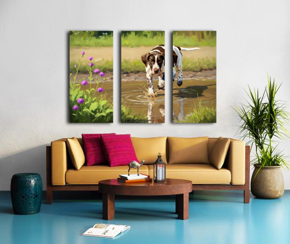 German Shorthaired Pointer Puppy Discovers Muddy Puddle Canvas print