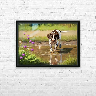 German Shorthaired Pointer Puppy Discovers Muddy Puddle Frame print