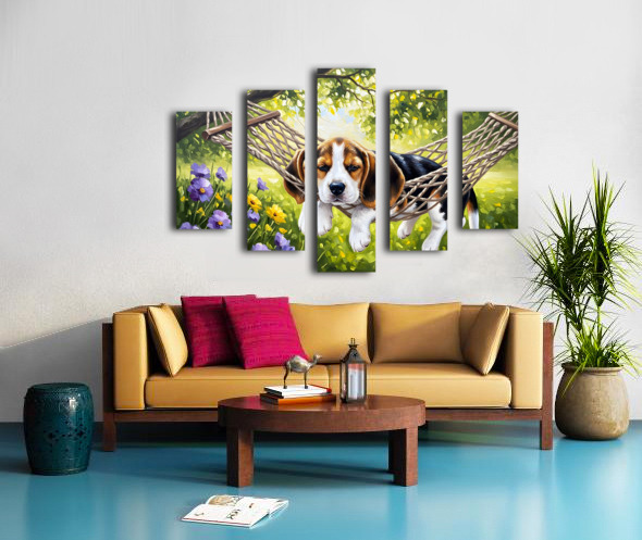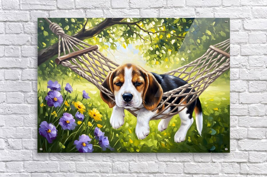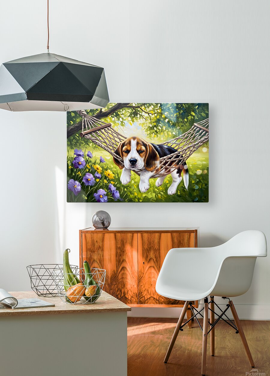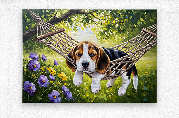 ABOUT THIS ARTWORK: BEAGLE PUPPY DISCOVERS PERFECT HAMMOCK SPOT